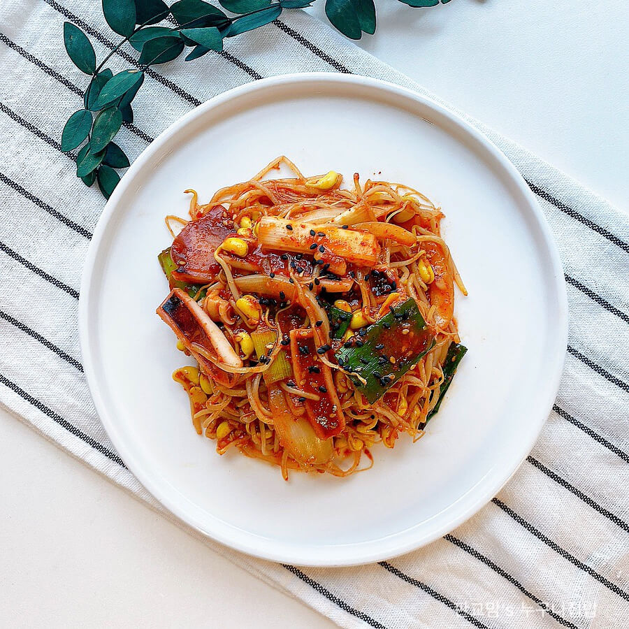 조리 팁: 콩나물은 숨이 죽기 전 약간 아삭할 때 불을 끄는 것이 좋습니다. 떡이 너무 익으면 퍼질 수 있으니 물이 끓기 전 떡을 미리 넣지 마세요. 양념장을 넣은 뒤 센 불에서 빨리 섞으면 양념이 잘 배어 맛이 풍부해집니다