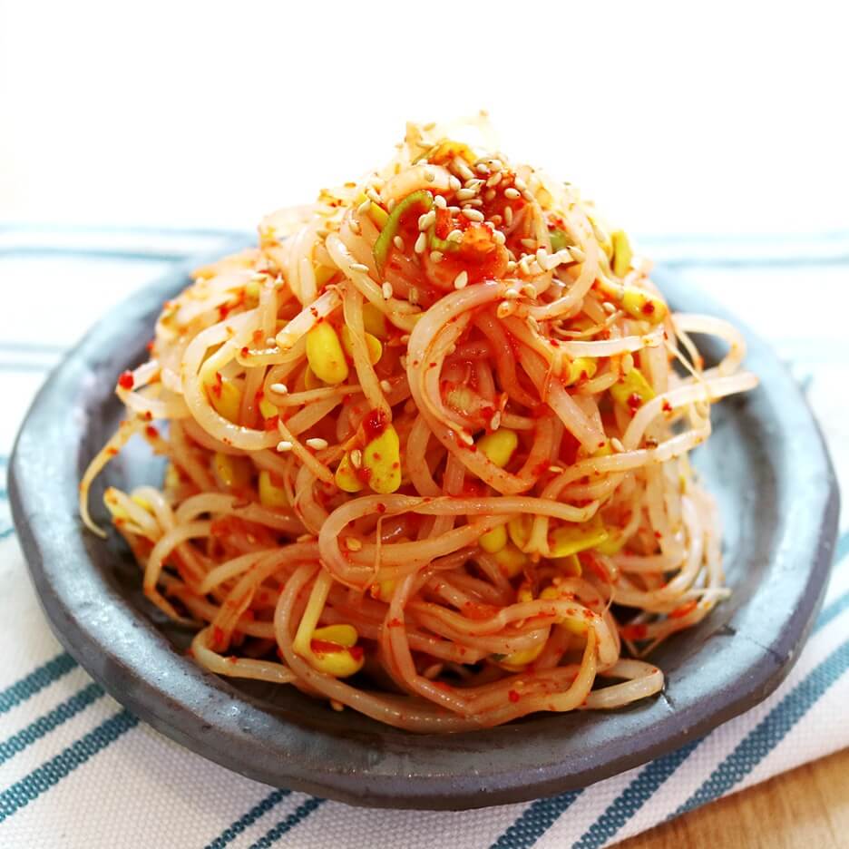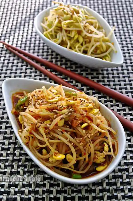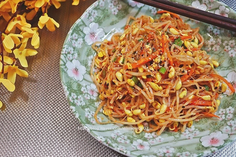 매콤한 맛: 고추장 1큰술과 다진 청양고추를 추가해 입맛을 돋우는 매콤한 콩나물 무침을 만들어 보세요.